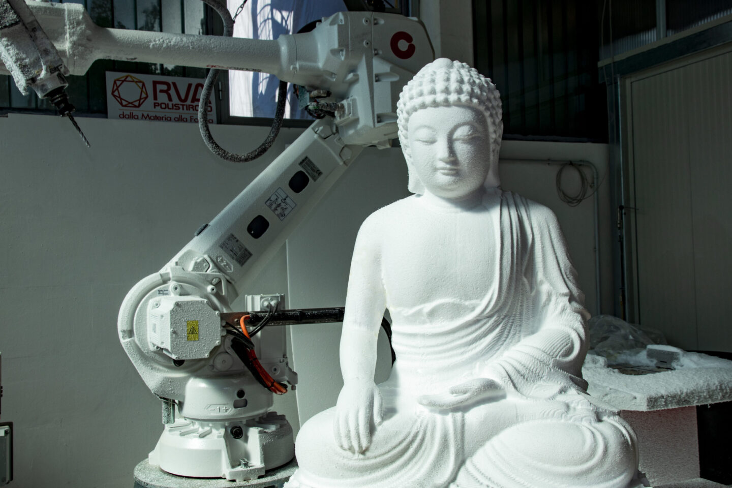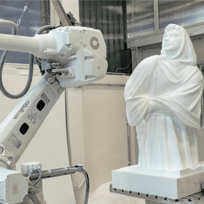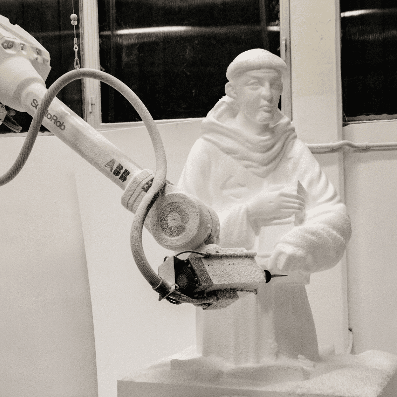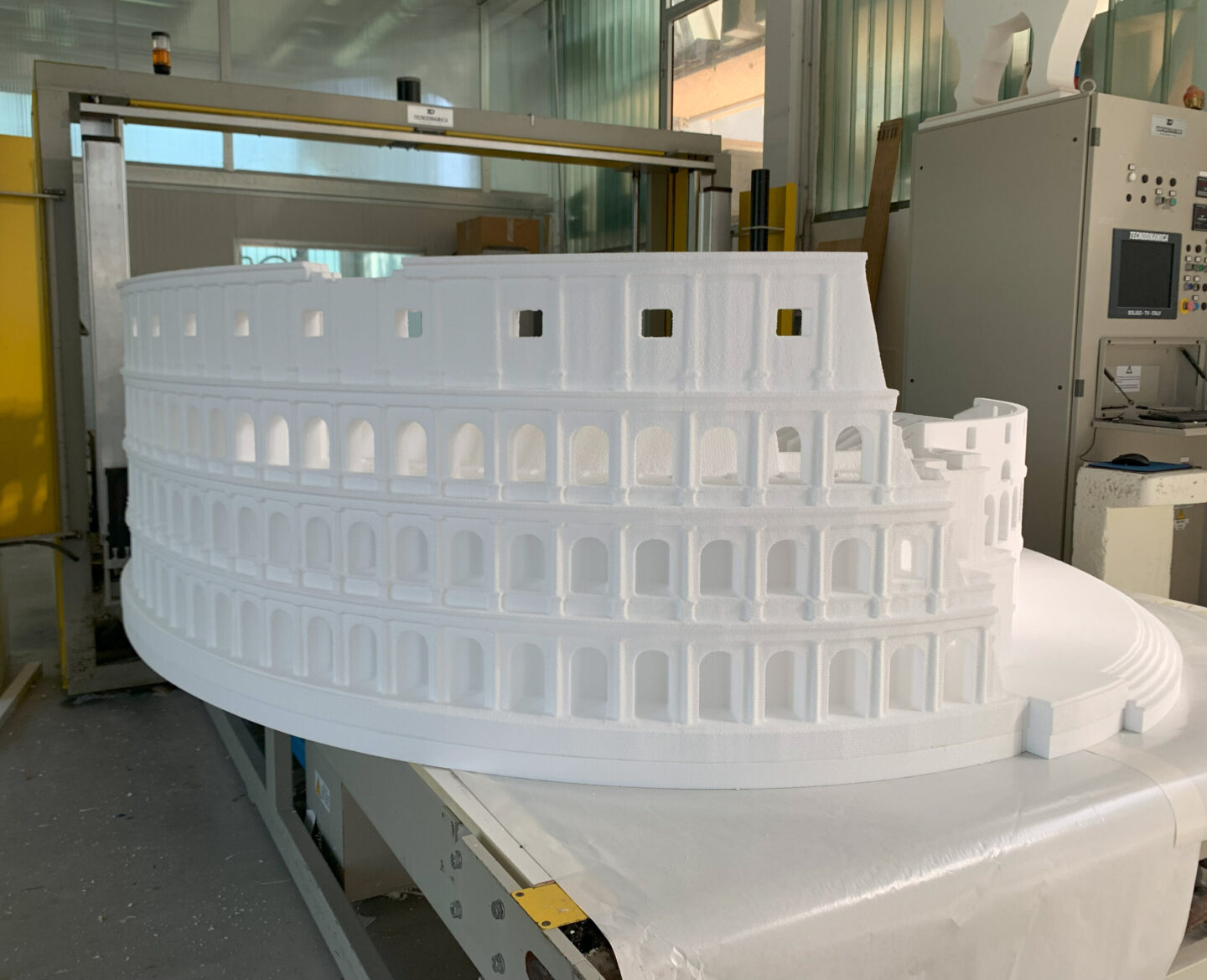 Nel settore scenografico realizziamo mock-up e sculture in polistirolo, impiegando avanzati sistemi di fresatura con robot antropomorfi a 7 assi. Questa tecnologia consente di ottenere lavorazioni tridimensionali di alta precisione e grande livello di dettaglio.