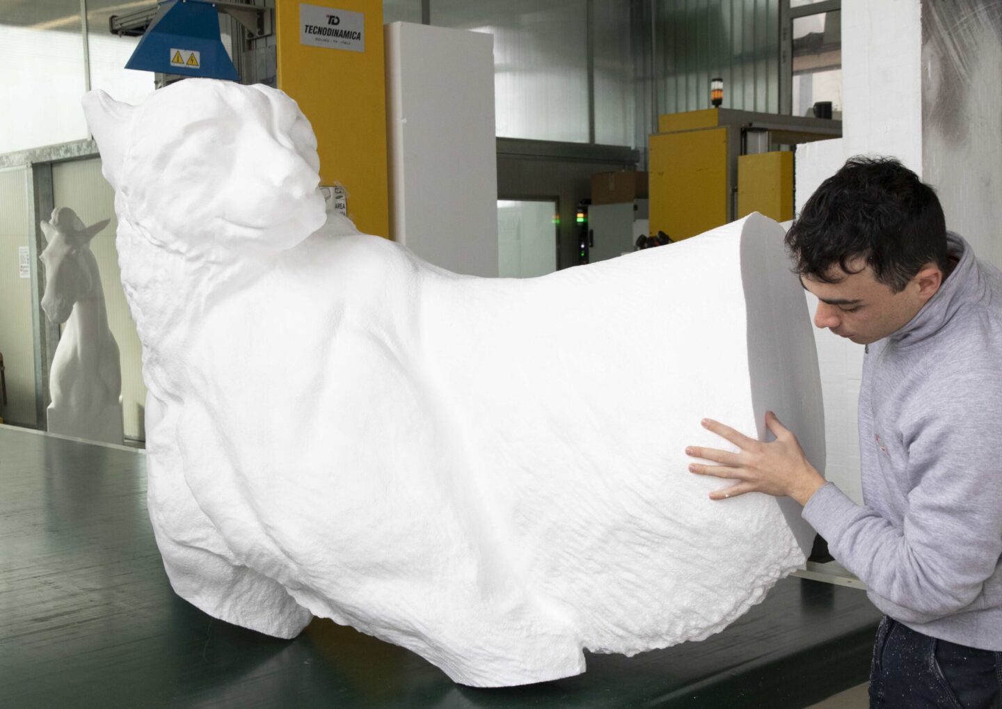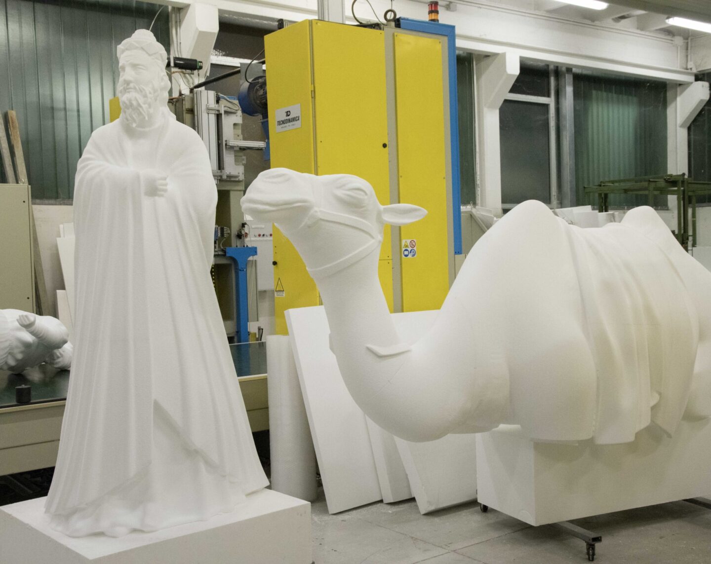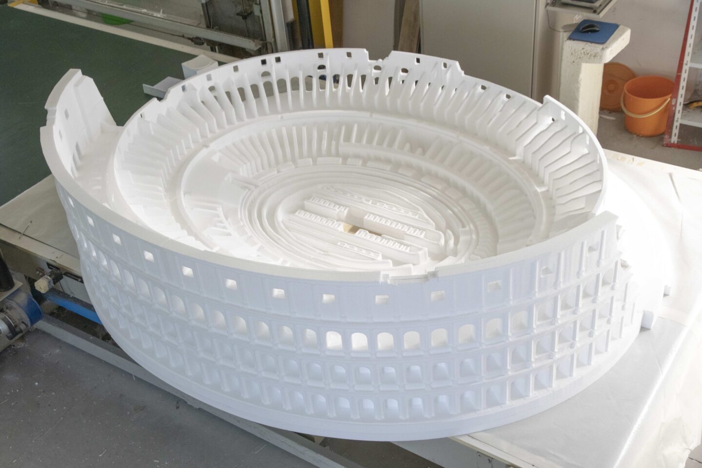Nel settore scenografico realizziamo mock-up e sculture in polistirolo, impiegando avanzati sistemi di fresatura con robot antropomorfi a 7 assi. Questa tecnologia consente di ottenere lavorazioni tridimensionali di alta precisione e grande livello di dettaglio.